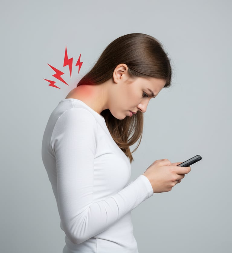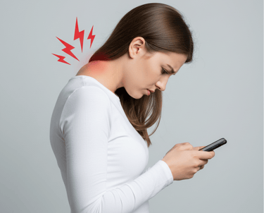 A má postura ao usar o celular, conhecida em inglês como Text Neck, pode causar dores insuportáveis na coluna e no pescoço.